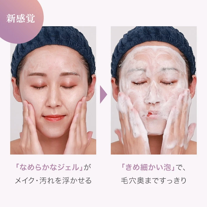 「クレンジング」と「洗顔」が、1本で完結。 なめらかなジェルが水と出会い、ふわふわの泡へ変化する新感覚ケア。