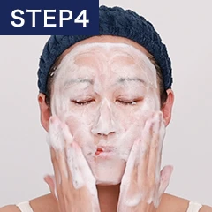 やさしく洗うSTEP3~4をもう一度繰り返します。2回泡立てることで汚れをきちんと落とし、肌への摩擦を抑えます。